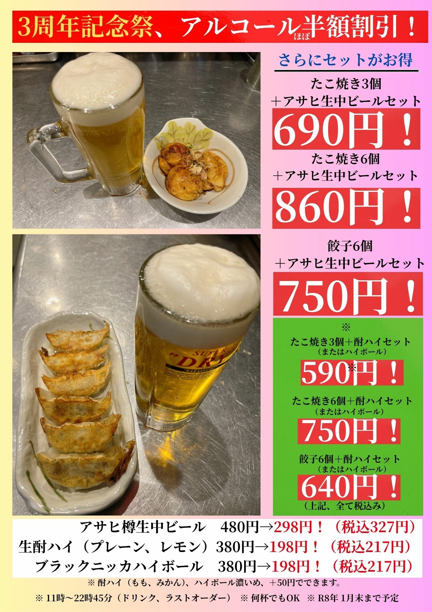 それと、帰省、他府県からの来店も多い時期なので、最新メニューとアルコールのイベント情報を貼っときます。